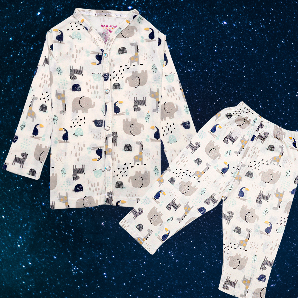 Introducing the perfect sleepwear for your little one: the Cotton Full Sleeves Vest & Pajama Sleep Suit Set. Made from soft and breathable cotton material, this sleep suit set is perfect for keeping your baby cozy and comfortable all night long. The full sleeves vest provides warmth and protection, while the pyjama pants ensure ease of movement for restful sleep. This set is suitable for babies of various ages and is available in a range of sizes to accommodate growing children. Give your baby the comfort they deserve with this cozy and convenient Cotton Full Sleeves Vest & Pajama Sleep Suit Set. Comes with a front open top and elastic waist.