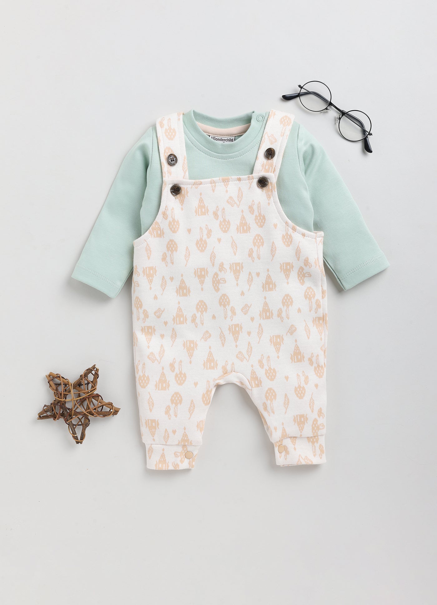 Full Sleeve Green Top with Gallice Dungaree