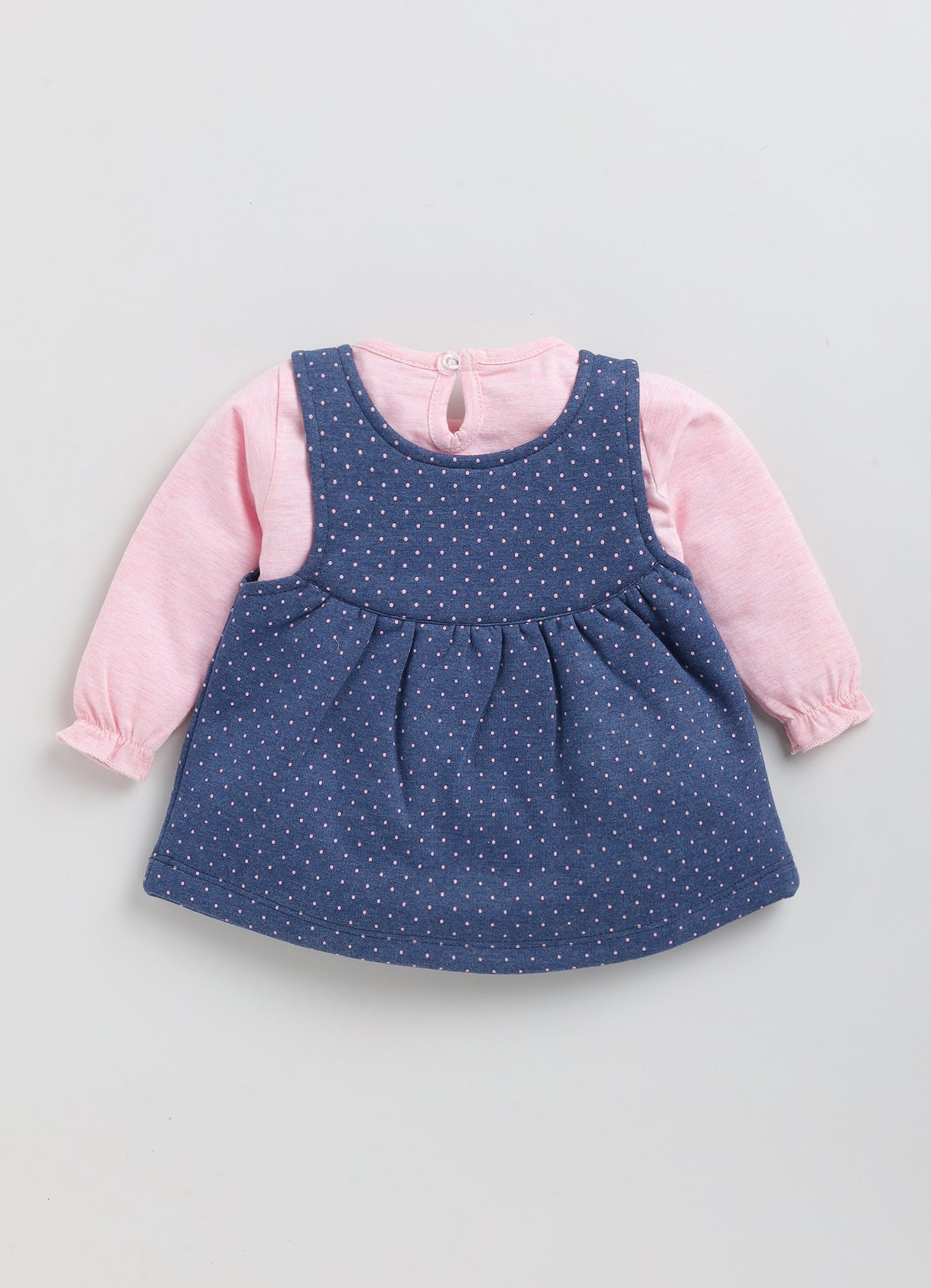 Get the perfect combination of style and comfort with our full sleeve top paired with a cute dungaree! Designed for small girls, this outfit is perfect for any occasion. Stay stylish and free to move with ease, while showcasing your unique personality. Make a statement with our top and dungaree duo!