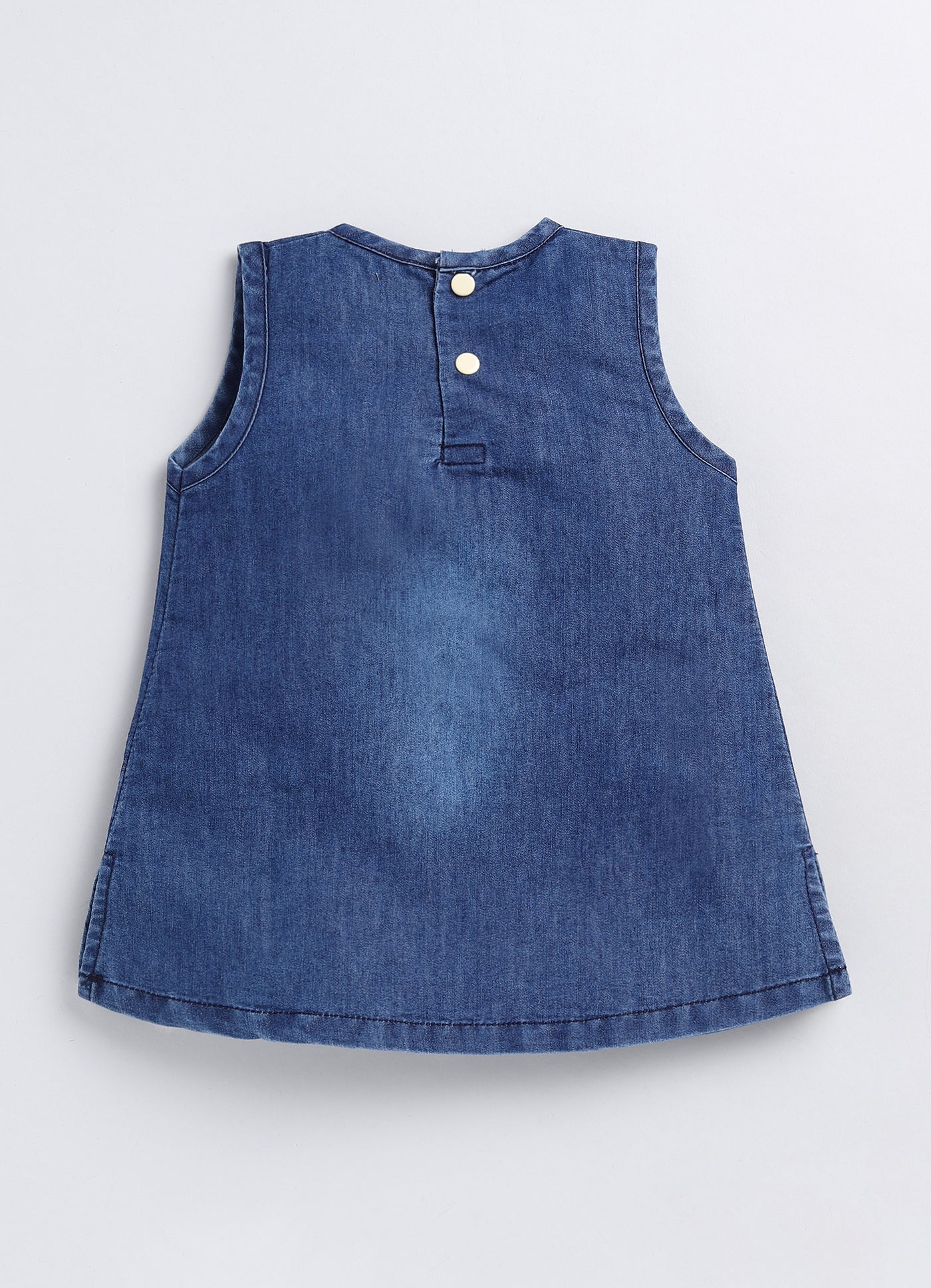 Introducing our new Wonderchild Sleeveless Cat Embroidered Dress - Denim Blue! This adorable dress features a cute Kitty applique and is made from lightweight fabric, perfect for everyday wear. The convenient snap button at the back ensures easy dressing for your little one. Get ready for a stylish and comfortable summer with this must-have dress!